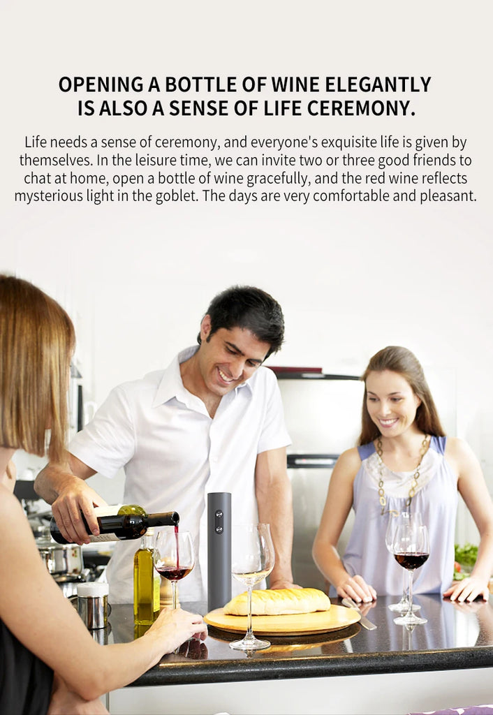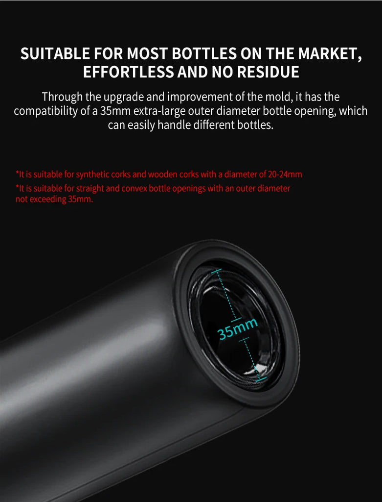 • Saca-rolhas automático:O recurso saca-rolhas automático garante que você não precisa mais lutar com saca-rolhas manuais. Este abridor elétrico faz todo o trabalho para você, economizando tempo e energia.
