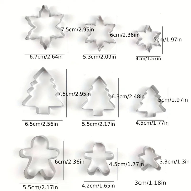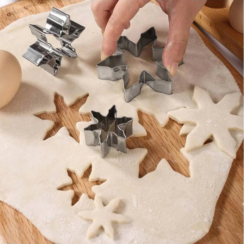 Molde de biscoito de floco de neve de natal, 3/5 peças, aço inoxidável, ferramenta de cozimento de cozinha, homem de gengibre, árvore de natal, molde de chocolate e doces co